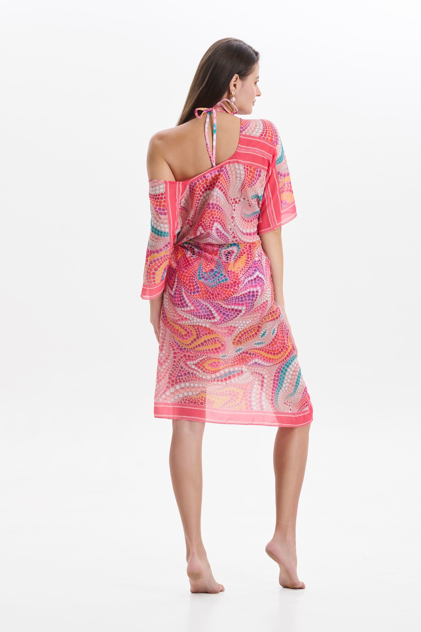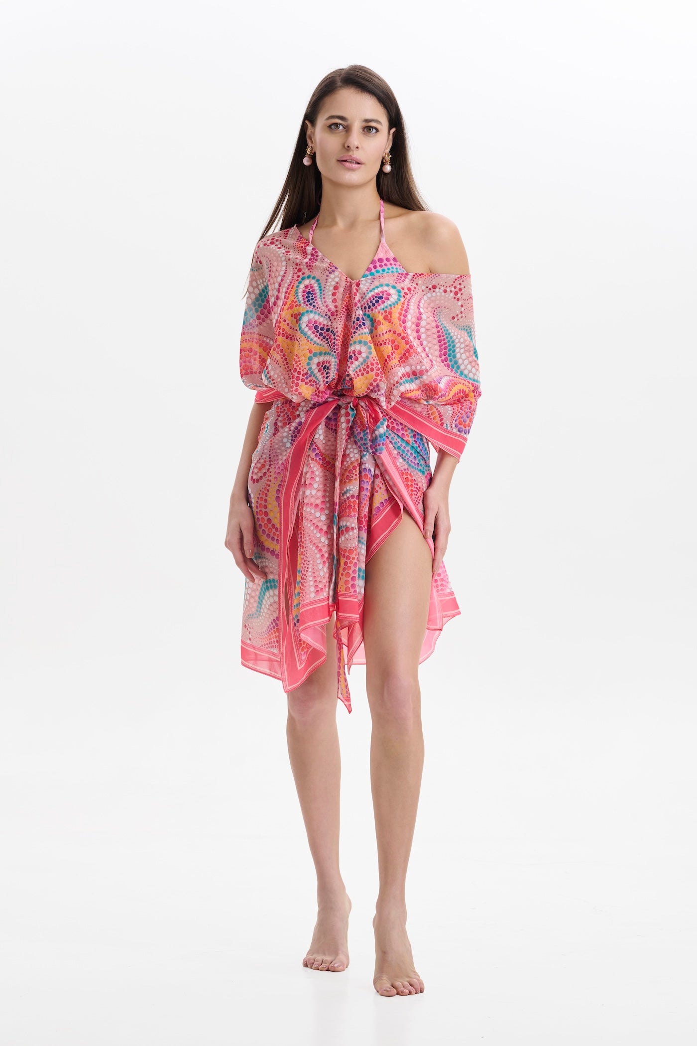 The Lunas Seamless Kaftaan is designed for fluid movement and effortless elegance. Crafted without visible seams, it flows naturally over the body—creating a smooth, sculptural silhouette that flatters every shape. The airy fabric and relaxed drape make it your perfect companion from beach to brunch and beyond.