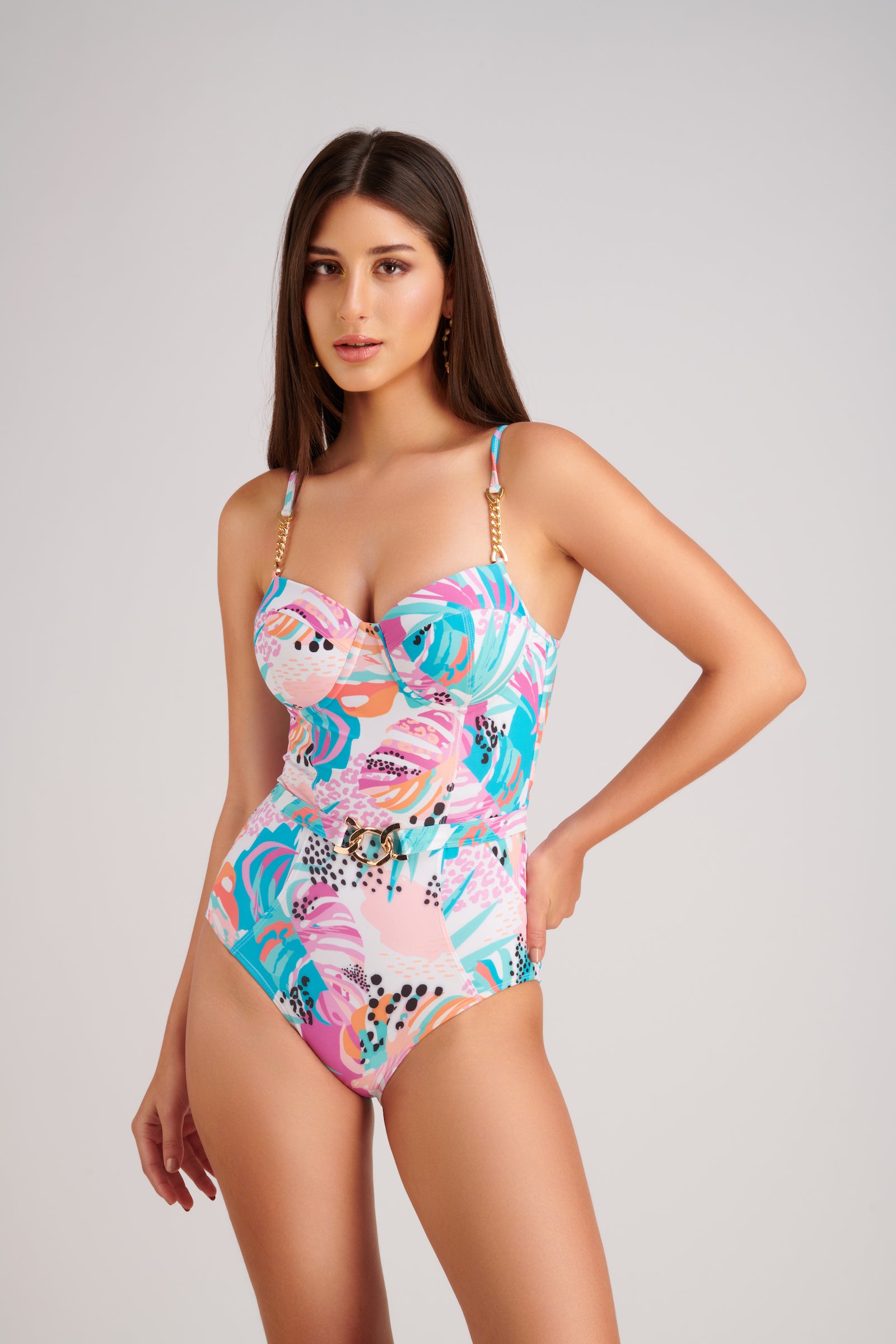 Discover the allure of our latest addition: a sexy yet elegantly designed swimsuit adorned with an enchanting aqua leaf print. Crafted with precision and style in mind, our underwire swimsuit effortlessly combines sophistication with allure. Dive into the azure waters with confidence, as this swimsuit hugs your curves in all the right places, accentuating your figure while providing ample support. Embrace the essence of summer elegance and make a statement with our irresistible aqua leaf print swimsuit, where style meets sensuality.