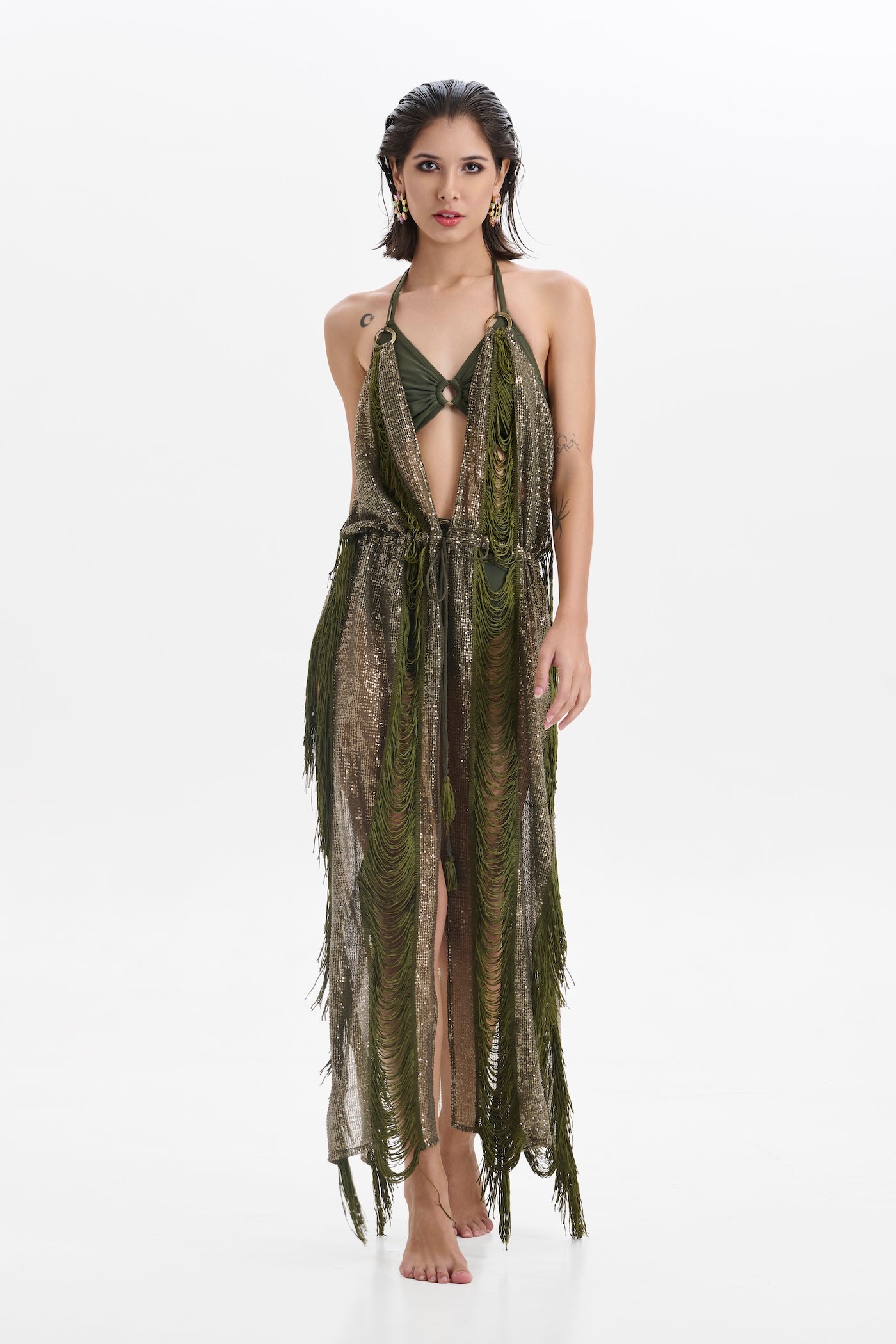 The Olive Halter Swim Cape is a statement piece designed to flow with you. Featuring a halter neckline that ties elegantly at the neck, this cape drapes beautifully over your swimwear—adding movement, mystery, and a touch of sophistication.
