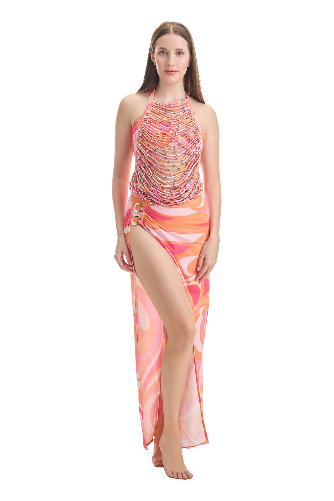 Featuring a vibrant sunburst design adorned with exquisite bead detailing, this set includes everything you need for a complete look. Each piece is thoughtfully crafted to mix and match, allowing you to create your own unique style, whether you’re lounging by the pool or heading out for a beachside brunch.