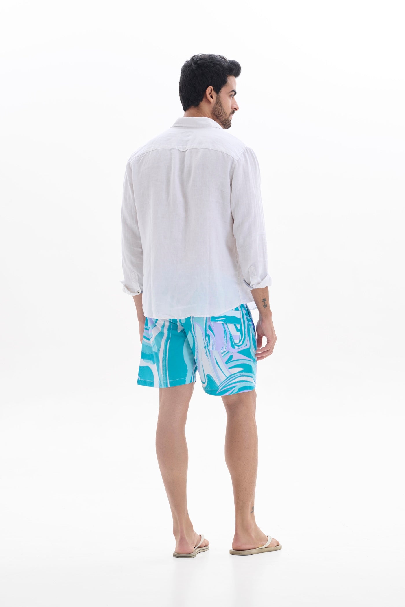 Our Surf Shorts in Wave Print are made for adventure—crafted from premium Italian fabric that moves with you, dries quickly, and feels as good as it looks. Featuring our signature ocean-inspired Wave print, these shorts bring bold energy to beach days, boat rides, and everything in between.
